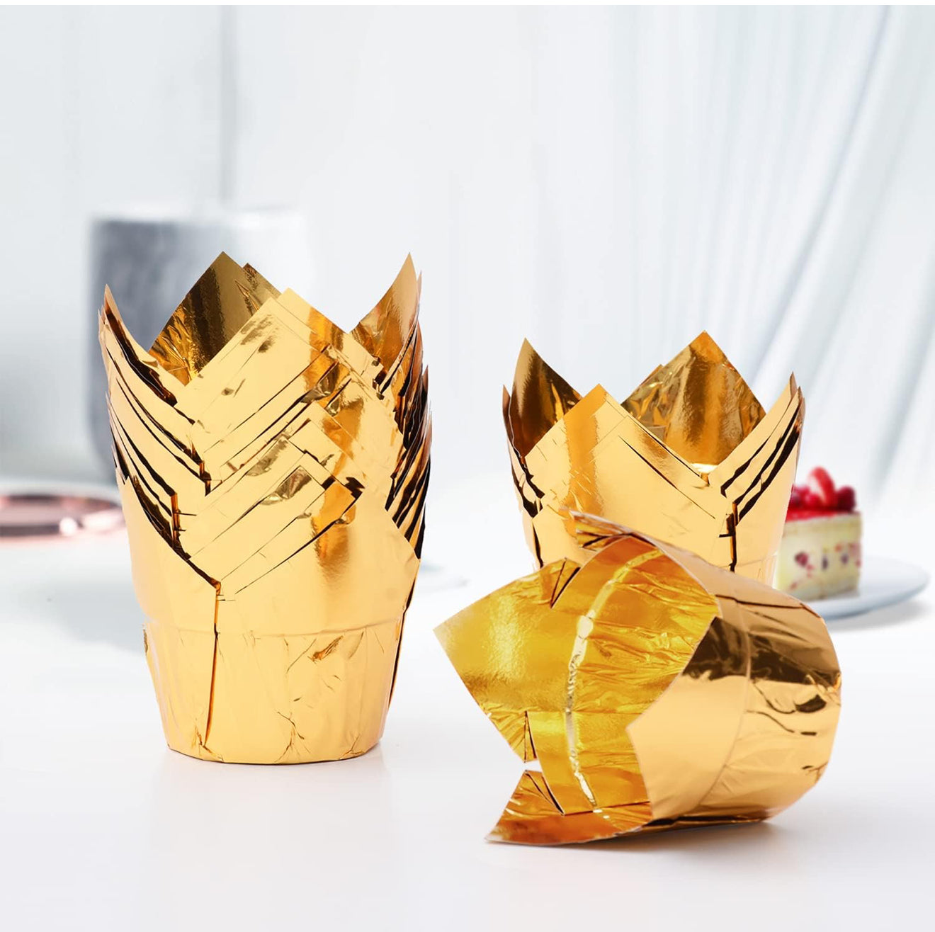 36 cupcakes in gold liners (picture above), all with edible gold flakes: